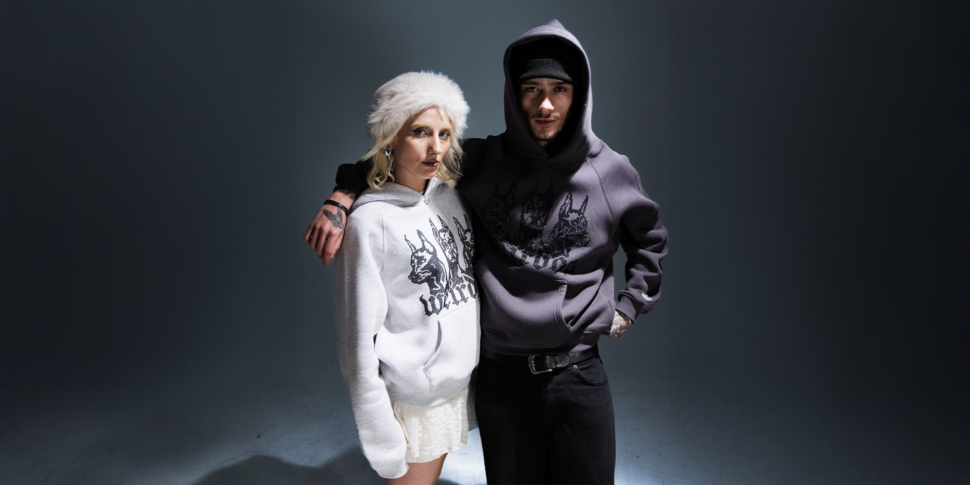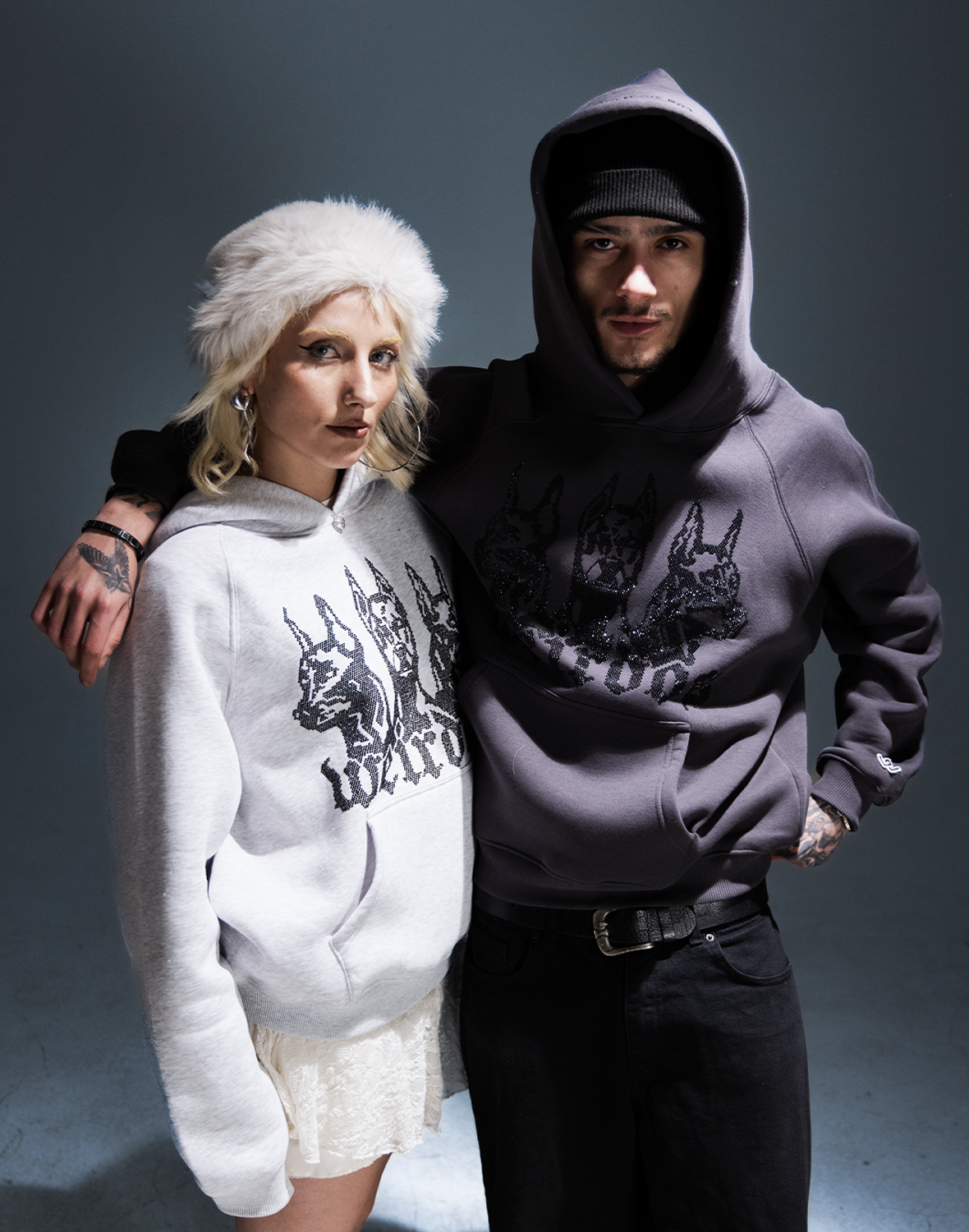 GREY FOG rhinestone oversized hoodie