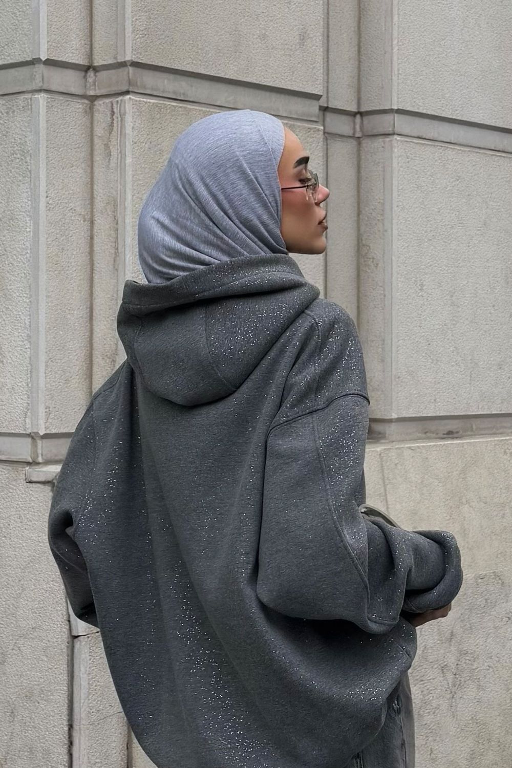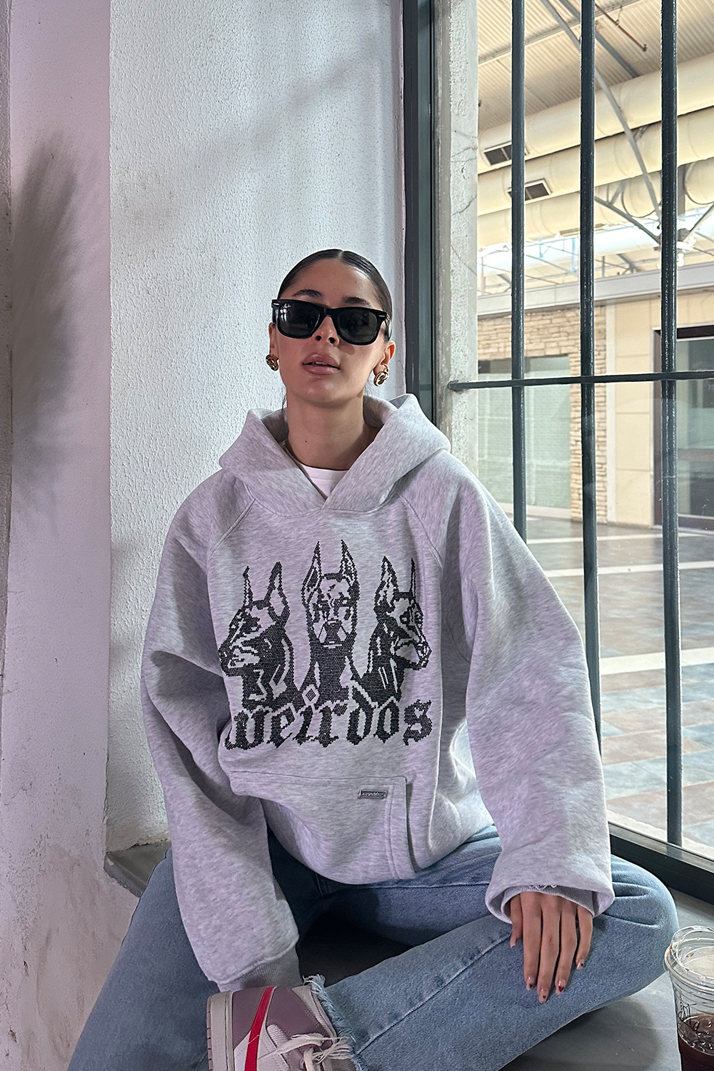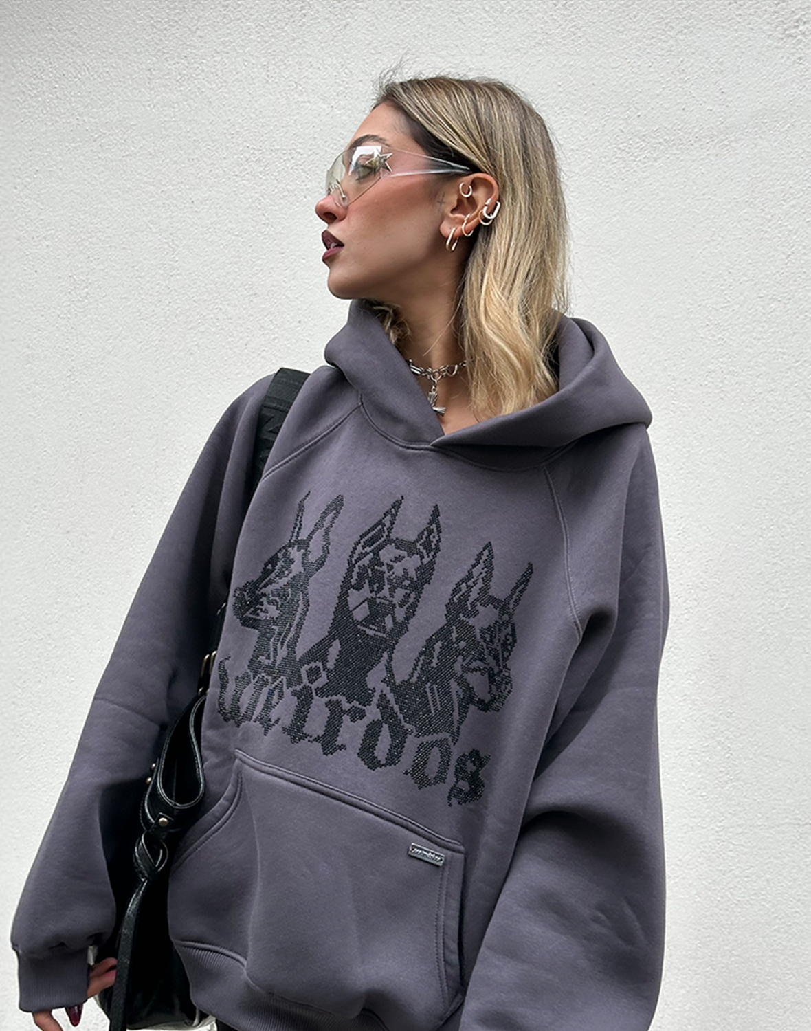GREY FOG rhinestone oversized hoodie