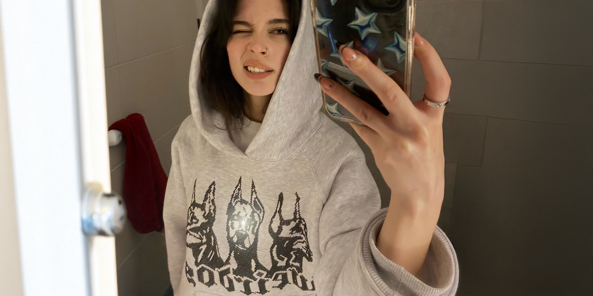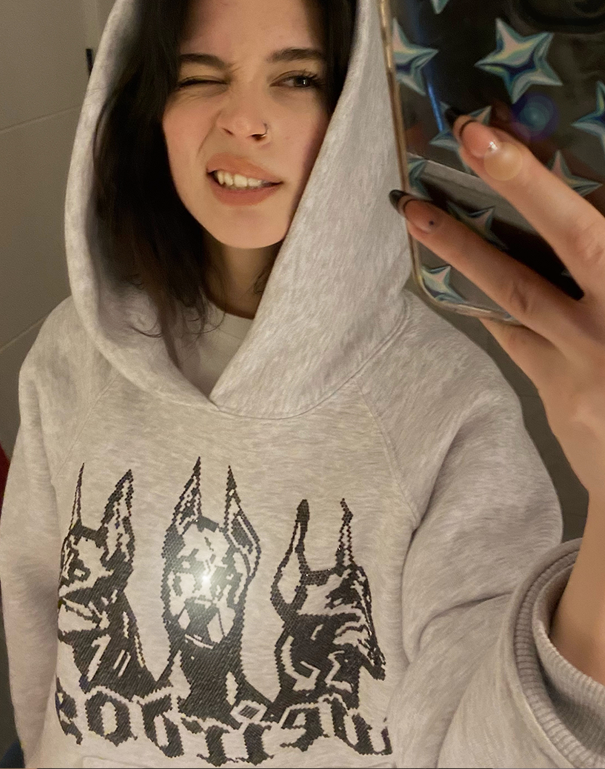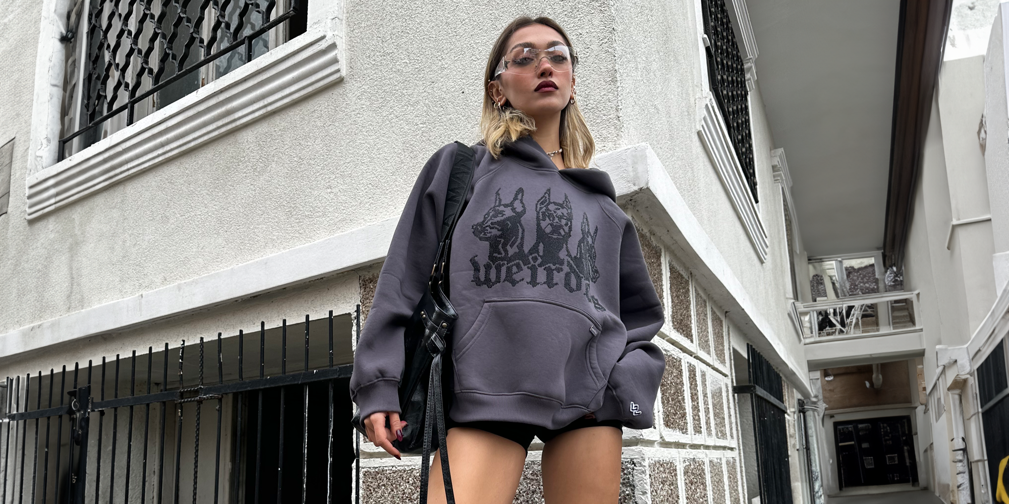 GREY FOG rhinestone oversized hoodie