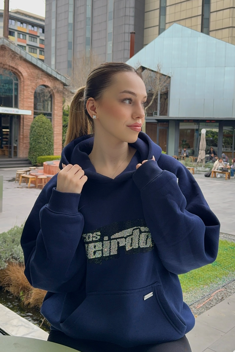 NAVY rhinestone oversized hoodie